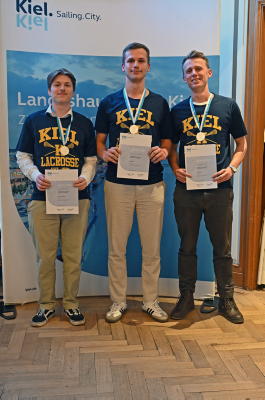 Die Landeshauptstadt Kiel ehrt jährlich ihre erfolgreichen Sportler*innen. Am Mittwoch, den 22. April 2026 wurden im Kieler Rathaus 132 Sportler*innen für ihre herausragenden sportlichen Leistungen geehrt. Darunter waren auch Lukas Kins, Felix Kins und Micha Haackert vom Lacrosse Club Kiel e.V.